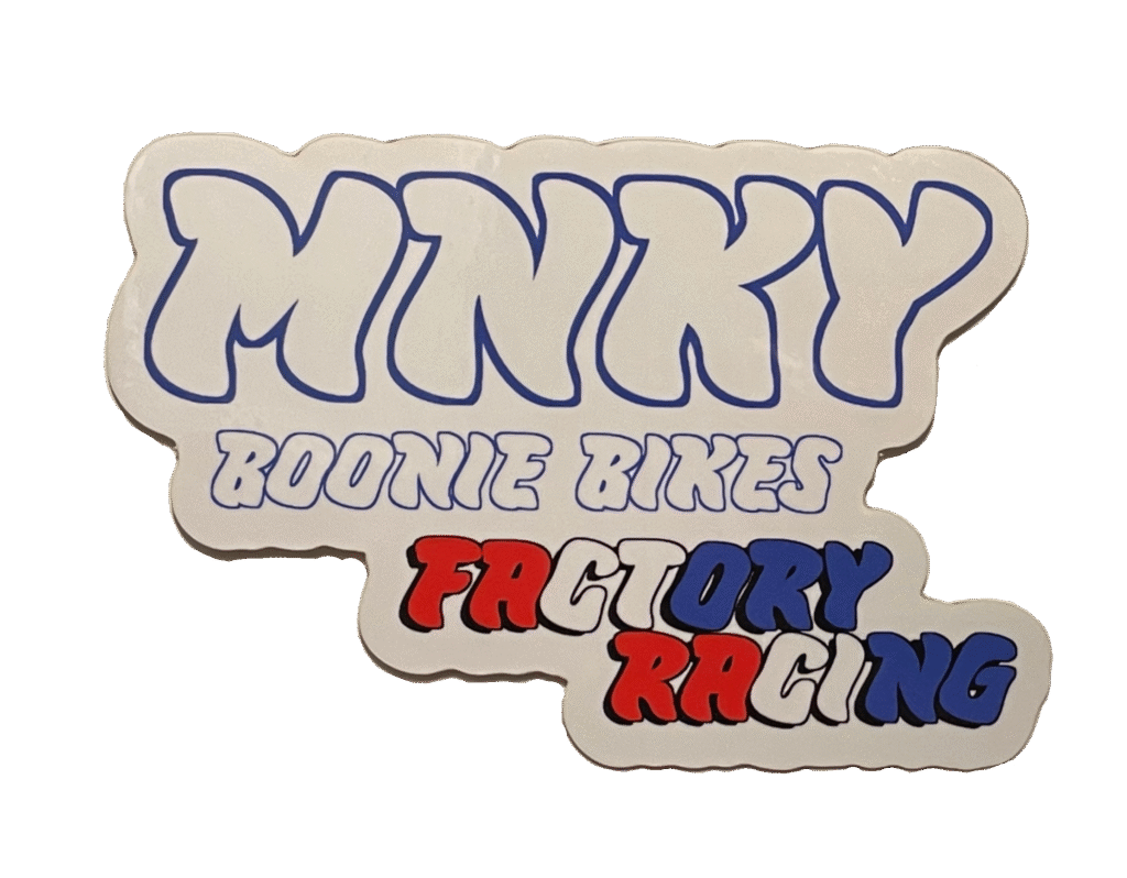 Factory Racing Sticker Was Now $2.50 Sale Show your support for MNKY Boonie Bikes Factory Race Team. 3″ x 2″ white sticker. Quantity Enter an amount $ Add to Cart Add to Cart You may also like Sale MNKY Boonie Bikes Glitter Sticker $2 Sale SN02 $2,425